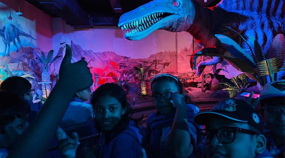 Students of Bridge International School from LKG to Class 8 enjoyed an exciting and educational field trip to Science City on Tuesday 18th November 2025. They explored the fascinating Evolution of Life through the Dark Ride and experienced the thrill of the Time Machine. The 3D Jungle Safari show added to the excitement, giving students a fun and immersive adventure. They also visited the Space Theatre, where they learned more about the wonders of the universe. After the shows, students spent joyful moments playing in the park.